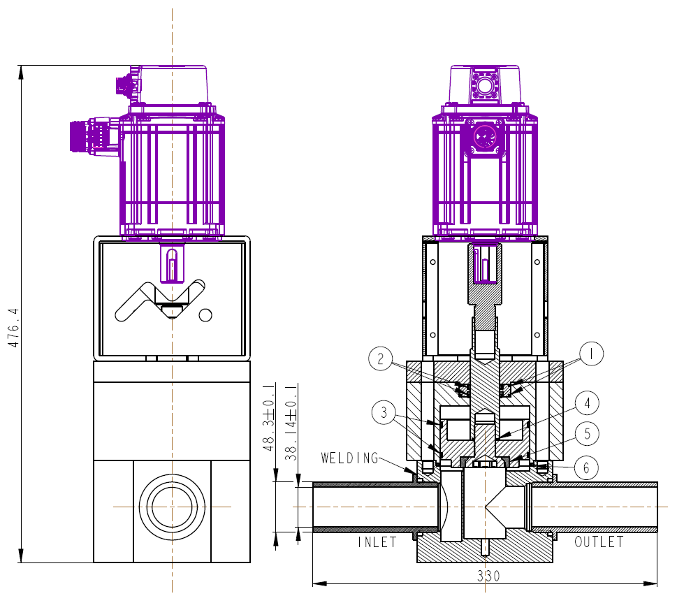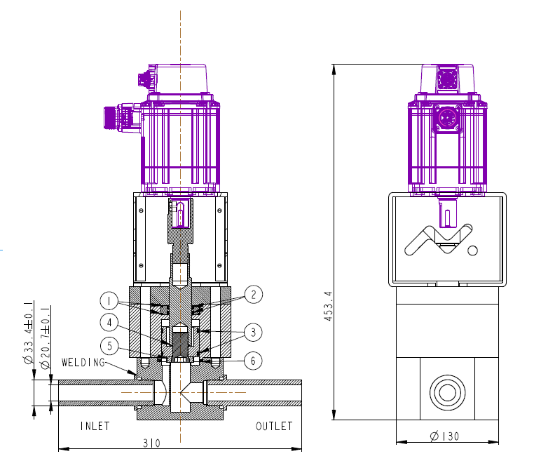 Available in DN25 and DN40 sizes, the valve combines 316L stainless steel construction with PTFE sealing materials and a high-speed motor actuator capable of extremely fast response.